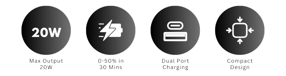 Photon 20 PD20W Dual Port Type C and USB Wall Charger Adapter for iOS & Android devices